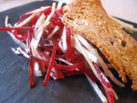Elisabeth Rachel Félix (1821-1858), plus connue sous son seul prénom Rachel, est l’une des tragédiennes les plus célèbres du XIXème siècle. En 1838, elle devient la maîtresse du Docteur Véron. Le Dr Véron est aussi un grand gastronome et sa table est l’une des plus appréciées de Paris. C’est donc très naturellement qu’il donne le nom de sa maîtresse à certains des plats qu’on invente dans sa cuisine, comme la salade Rachel.